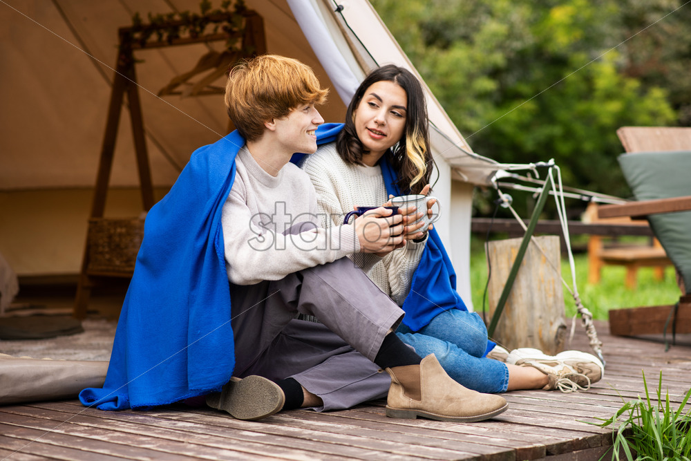 Home » Shop » photo » A couple sitting near a tent at glamping
