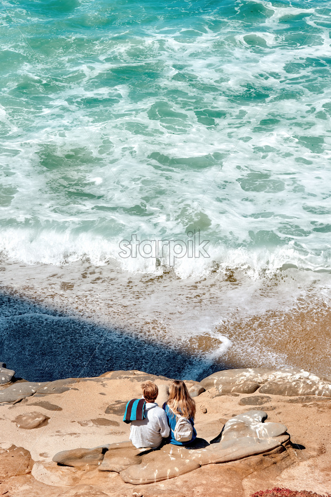 Home » Shop » photo » A couple sitting on the rocks near the Pacific ocean in San Diego, USA