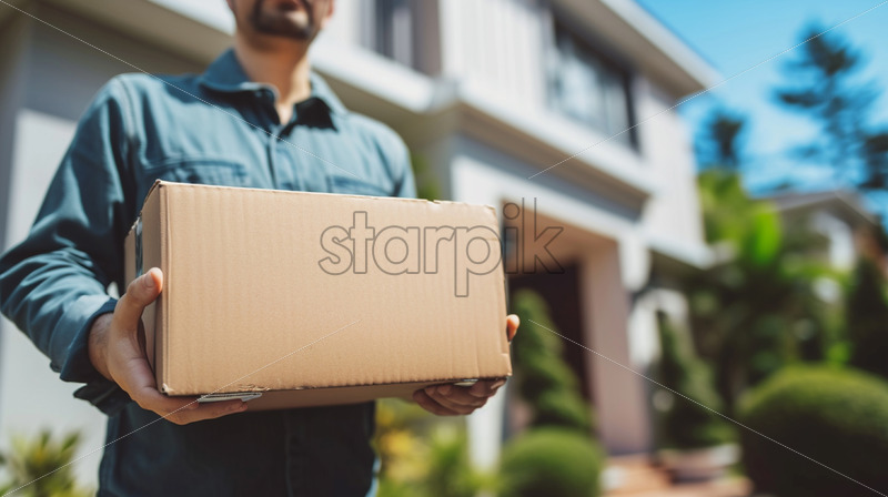 A courier holding a cardboard package