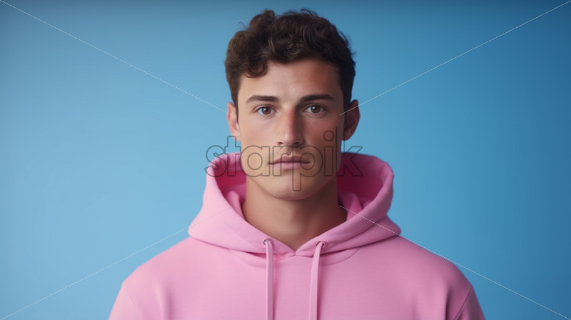 A happy man in colorful clothes on a pastel background