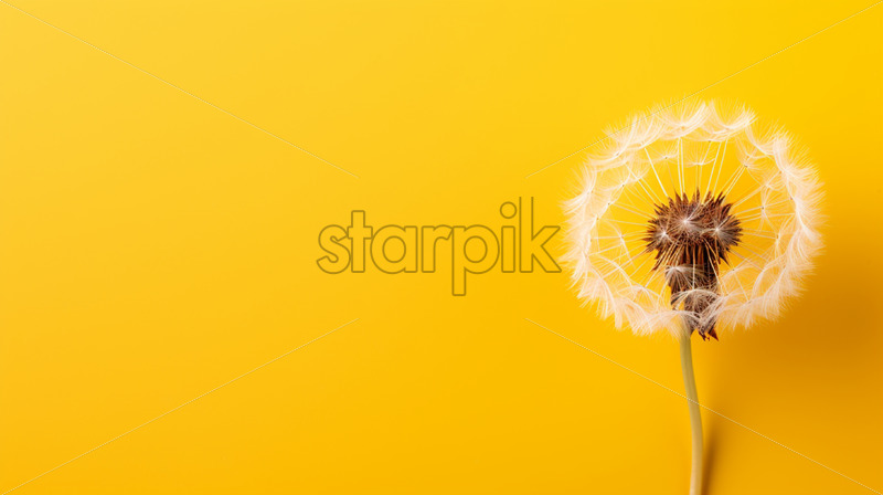 A dandelion on a yellow background