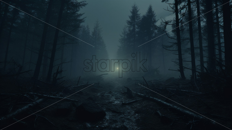 Mystical road in the forest with camper car riding on it. Mountains on background. Innsbruck, Austria Royalty Free Stock photo