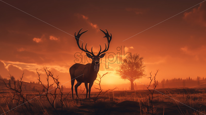 Home » Shop » Uncategorised » A deer on a field at sunset