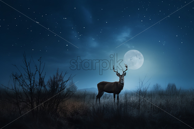 Home » Shop » Uncategorised » A deer on a plain at night under the full moon
