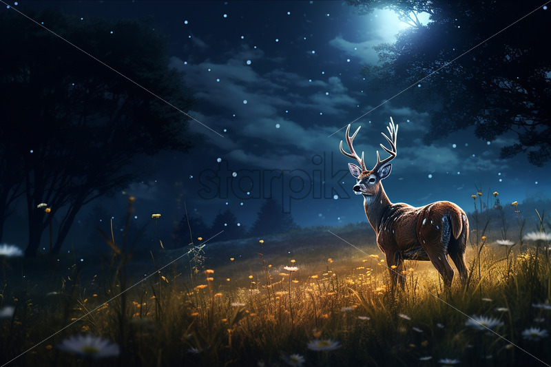 The silhouette of a fox on a plain at sunset, created in 2d software