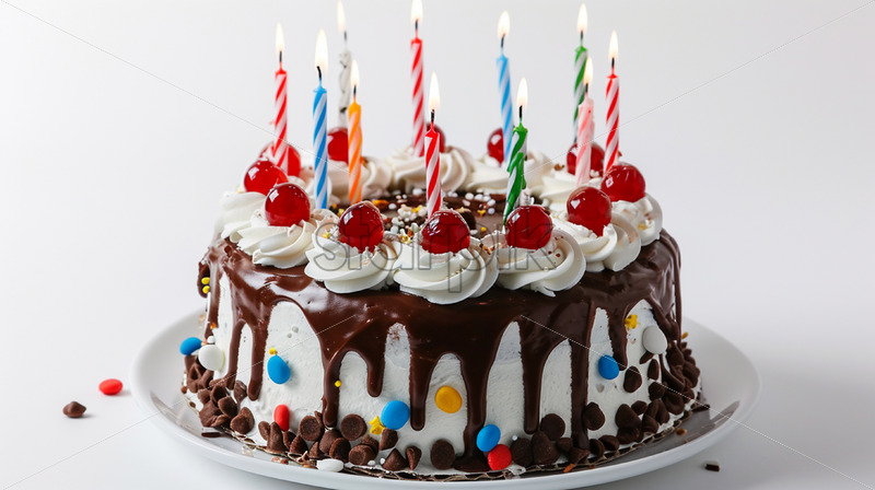The birthday cake adorned with candles, frosting, and vibrant decorations