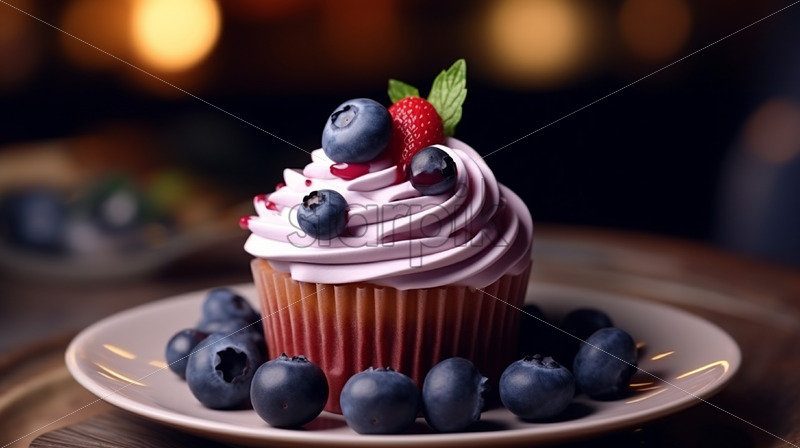Home » Shop » Uncategorised » A delicious blueberry and raspberry cupcake on a plate