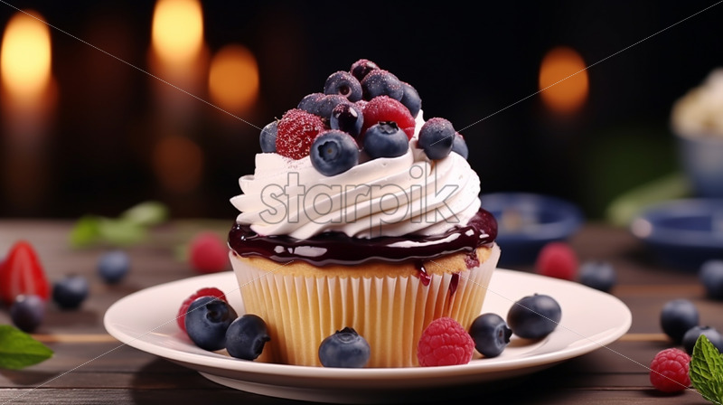 Close up of a Napoleon cake with strawberries and blueberries on a white plate at a cafe Royalty Free Stock Video Footage