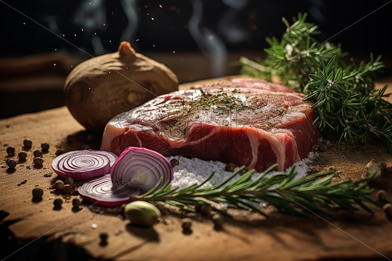 Close up of a Sirloin Steak with Barbecue Sauce and micro-plants on the side Royalty Free Stock Video Footage