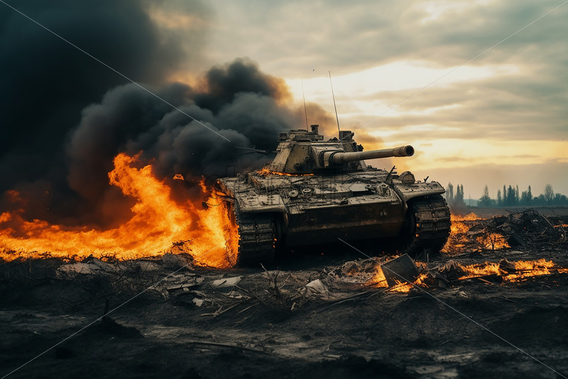 Home » Shop » Uncategorised » A destroyed tank in a field