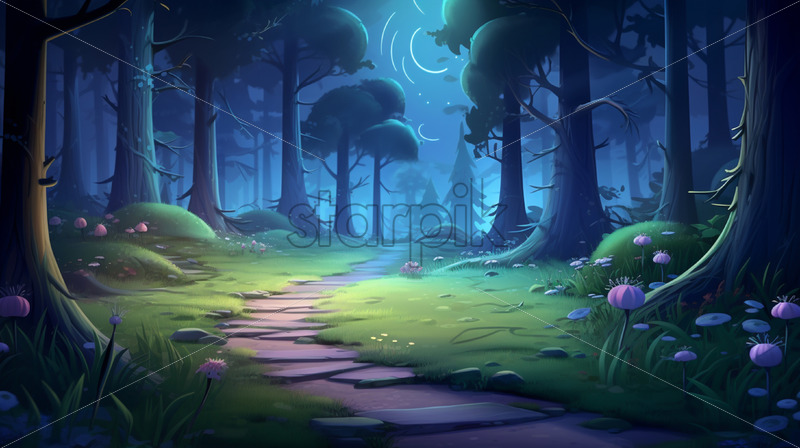 A digital painting of a magical forest