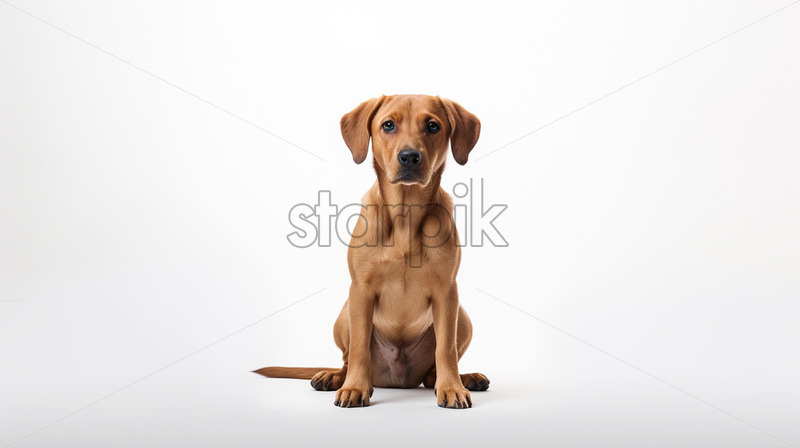 Pomeranian with yellow fur sitting on the snow on the backyard. Snowflakes falling on it Royalty Free Stock Video Footage