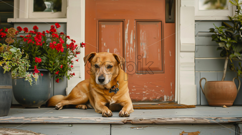 Home » Shop » Uncategorised » A dog standing on the threshold of a house