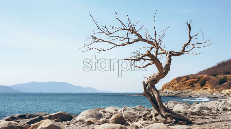 NIKITI, GREECE – OCTOBER 8, 2020: Beach on Aegean sea coast with closed umbrellas and sunbeds, rocks in the water, embankment street, rows of buildings. Slow motion, vertical shooting Royalty Free Stock Video Footage