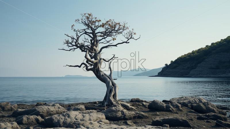 NIKITI, GREECE – OCTOBER 5, 2020: Beach on Aegean sea coast, rocks in the water, embankment street, sea port and green hills in the distance Royalty Free Stock Video Footage