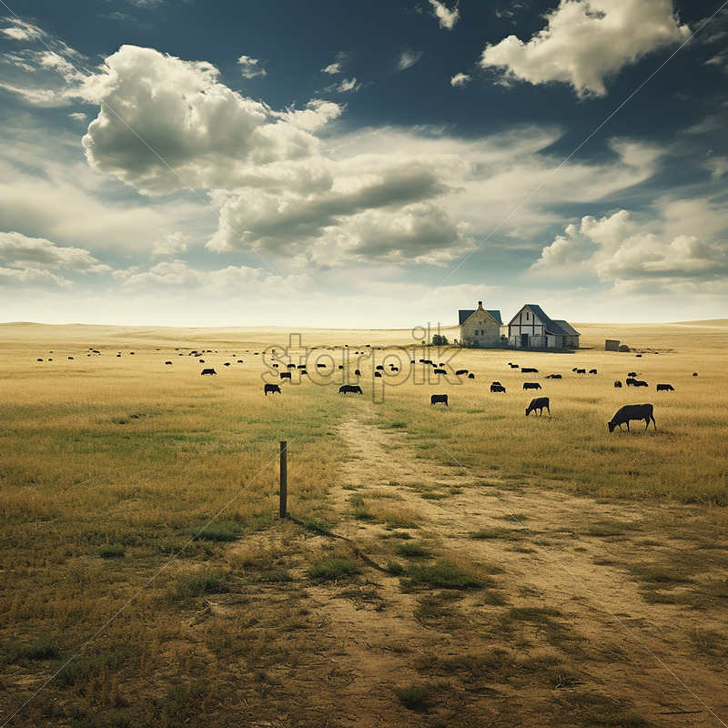 Home » Shop » AI Illustration » A farm in the village with animals grazing next to it