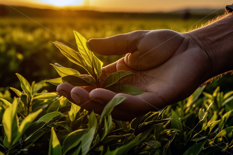 A hardworking farmworker in the sun-drenched coastal fields of California, harvesting crops against the backdrop of the ocean.