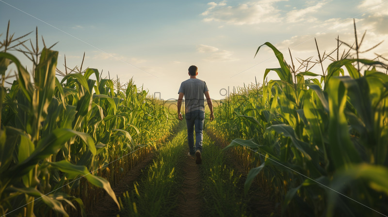 A diligent potato farmer in Idaho, USA, amidst vast fields of potato plants.