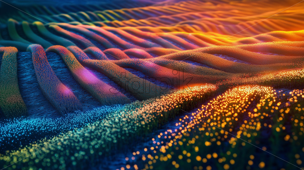 Home » Shop » AI Illustration » A field divided into glowing sections, each being monitored by quantum devices