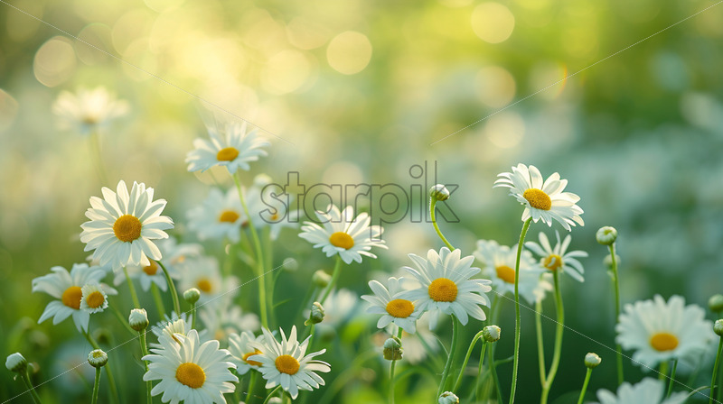 A field of daisies swaying in unison as a gentle breeze sweeps through