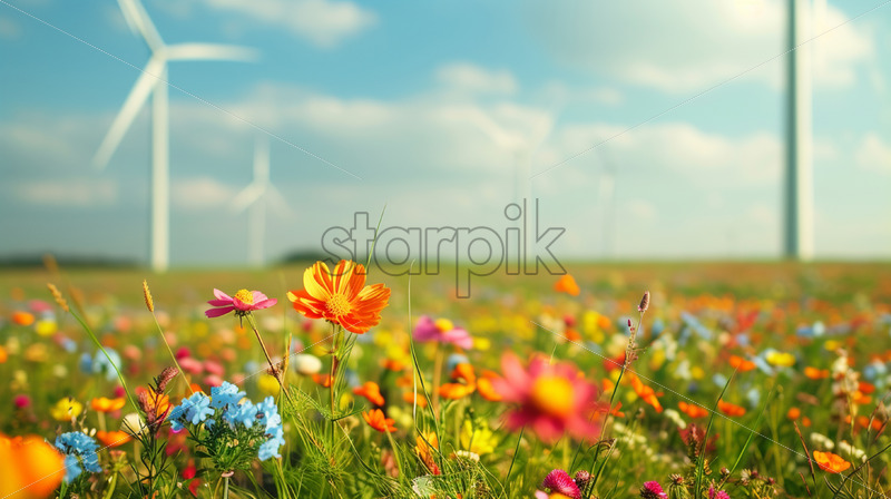 Home » Shop » Uncategorised » A field of flowers against the background of wind turbines