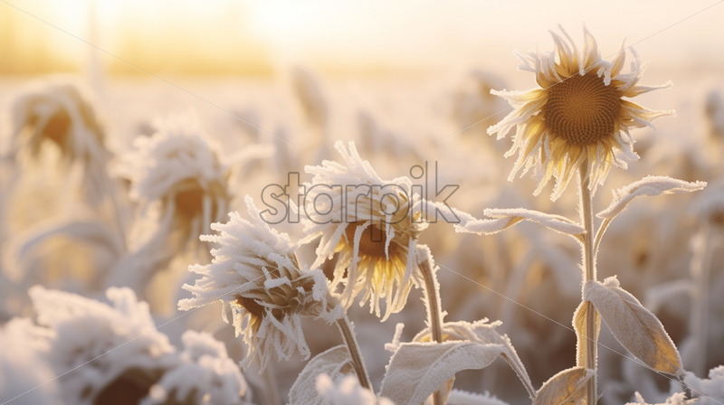 A field of frozen sunflowers