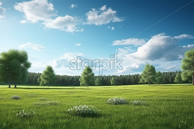 Generative AI a mountain landscape with a plain full of multicolored flowers and different species