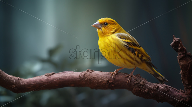 A little bird on a tree trunk, a frozen lake in the background, winter atmosphere