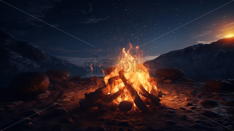A fire burning in a camp
