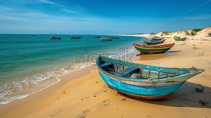 Flipped boat with orange bottom on a beach of Aegean sea in Nikiti, Greece