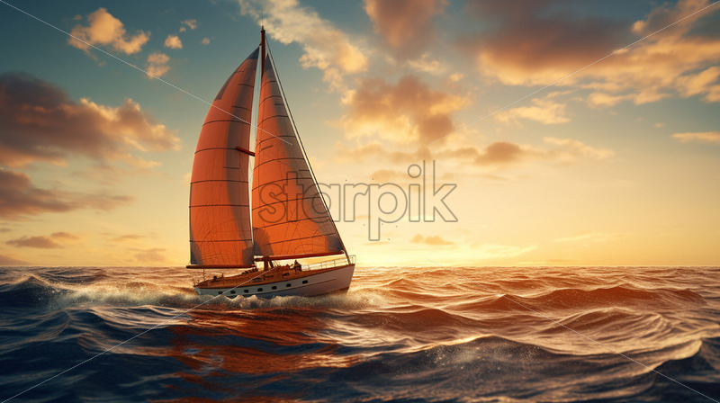 Group of seagulls flying dynamically over the sea at sunset, with a sailboat visible in the distance Royalty Free Stock Video Footage