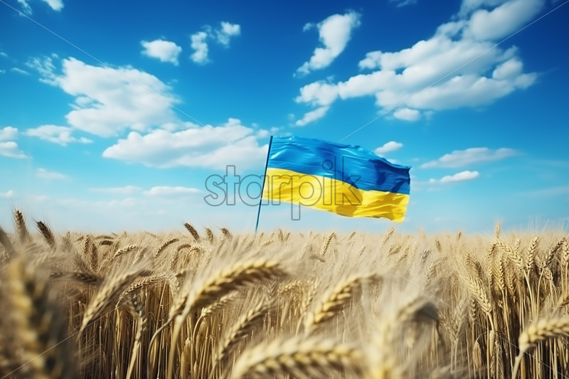 A flag of Ukraine in a field of wheat