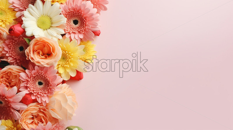 Home » Shop » Uncategorised » A floral composition on a pastel background, top view