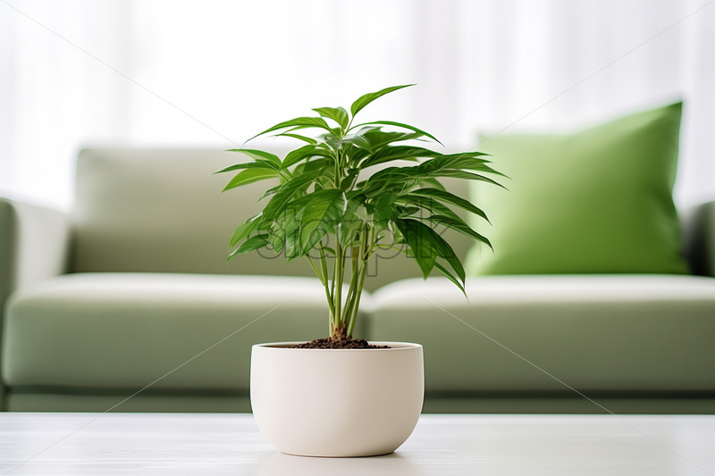 A flower in a white pot on a table in the living room