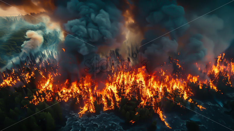 Aerial drone view of the consequences of fires in Greece. Burned vegetation, ash and coal
