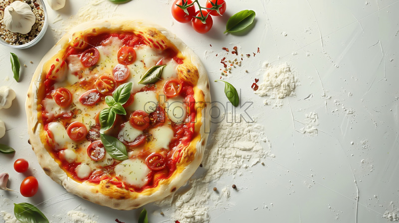 Close up of a classic margherita pizza with cherry tomatoes and basil Royalty Free Stock Video Footage