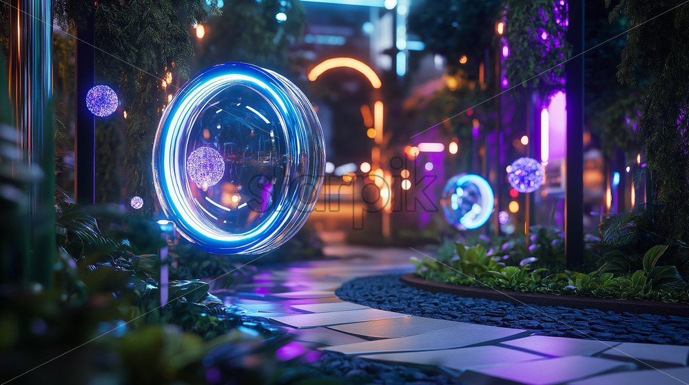 Home » Shop » AI Illustration » a futuristic theme park with quantum technic