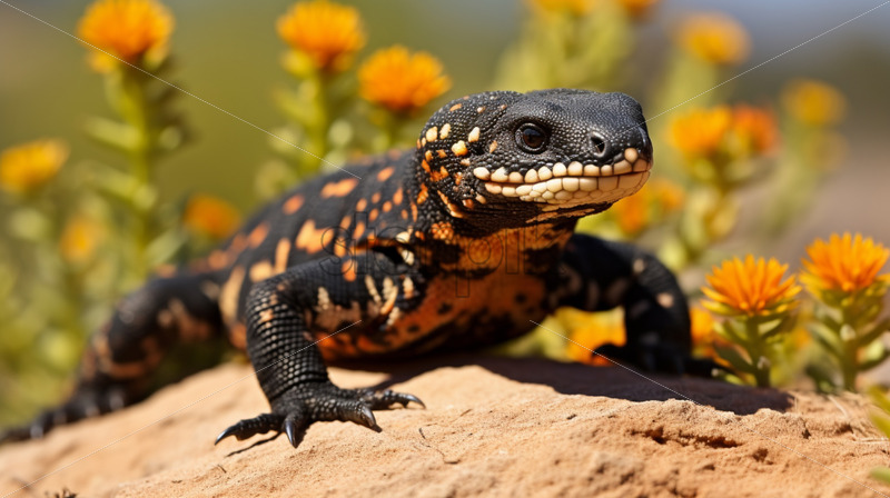 A Gila monster, one of the few venomous lizards, basking in the sun