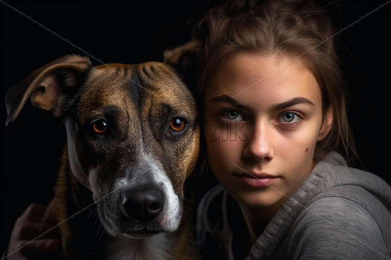 Home » Shop » Uncategorised » A girl and a dog on a black background