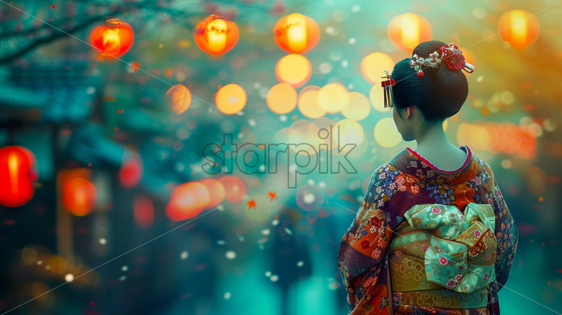 Kyoto, Japan – April 11, 2025: Two Japanese women wearing blue and orange traditional clothes holding umbrellas at the Maruyama Park at sunset Royalty Free Stock Video Footage