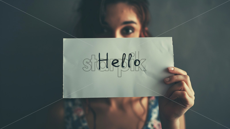 Home » Shop » Uncategorised » A girl holding a note with the text Hello