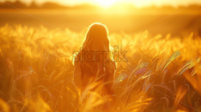 A girl in golden wheat wool