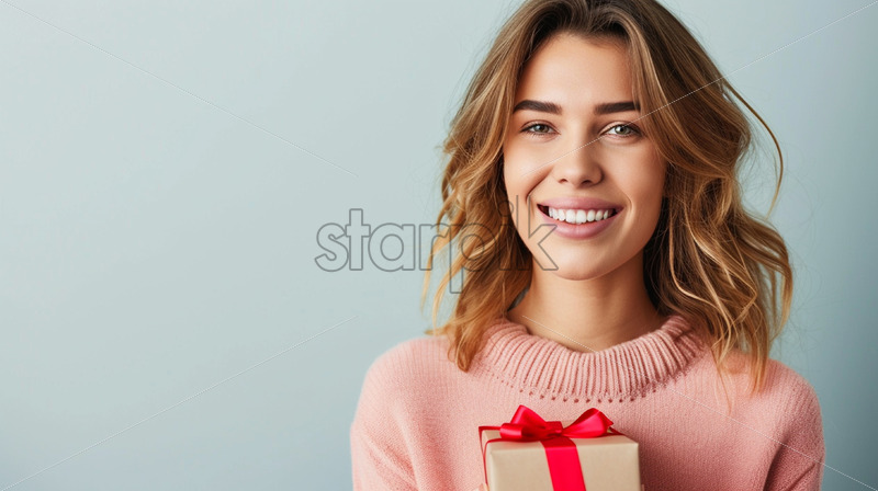 Girl is showing a flacon. Smiling. White background Royalty Free Stock Video Footage