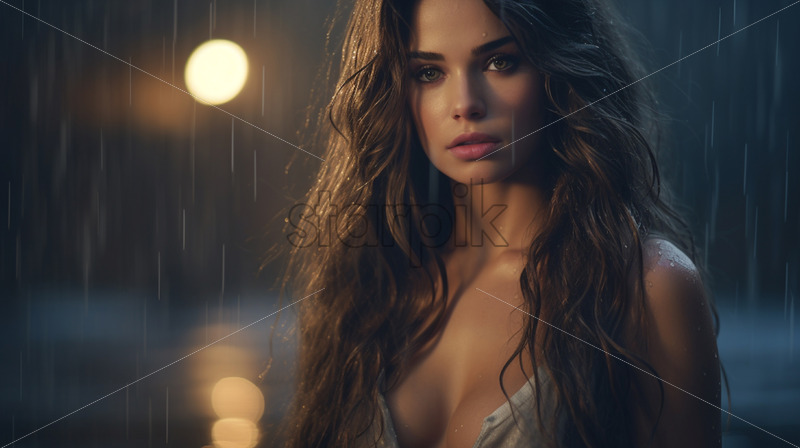 A girl with long hair in the rain