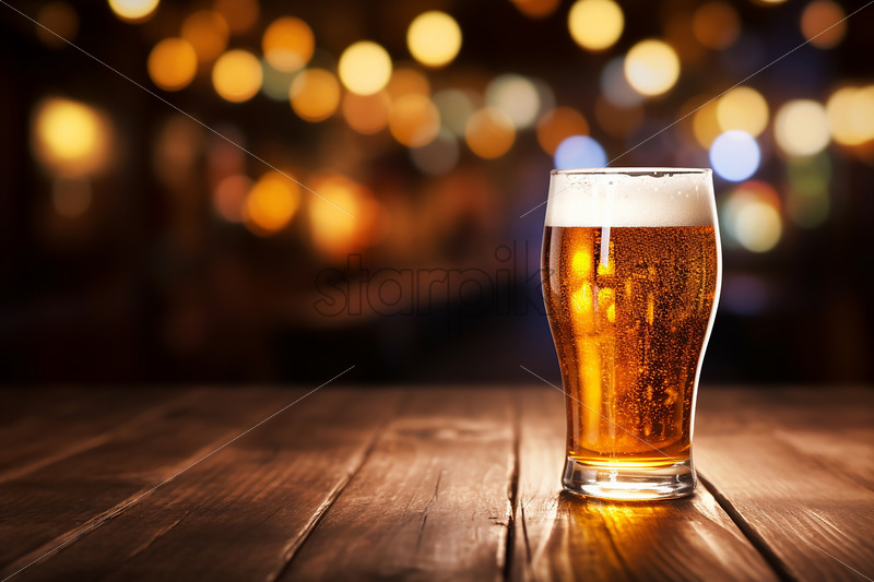 A glass of beer on a table in the pub