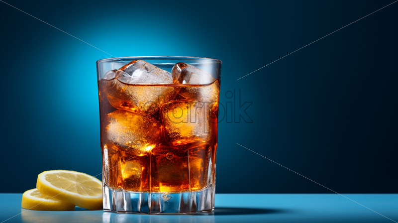 A glass of cold iced tea on a blue background