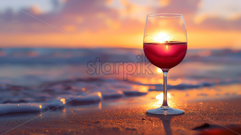 Red cocktail with orange slice on a table by the blue green sea video Royalty Free Stock Video Footage