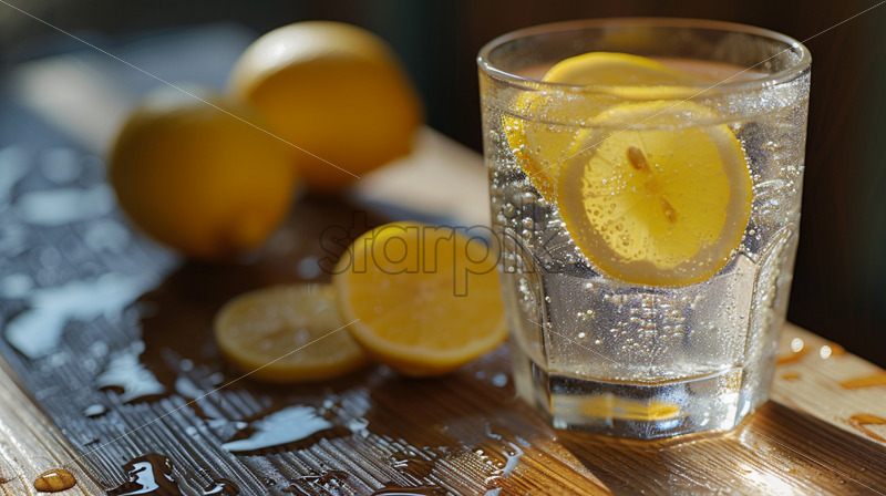 Close up of a glass of green tea on a wooden tray on a table Royalty Free Stock Video Footage