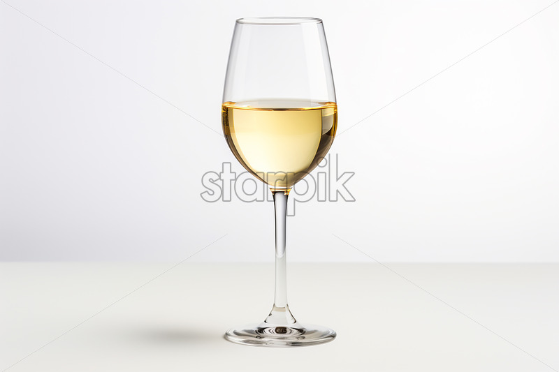 A glass of white wine on a white background