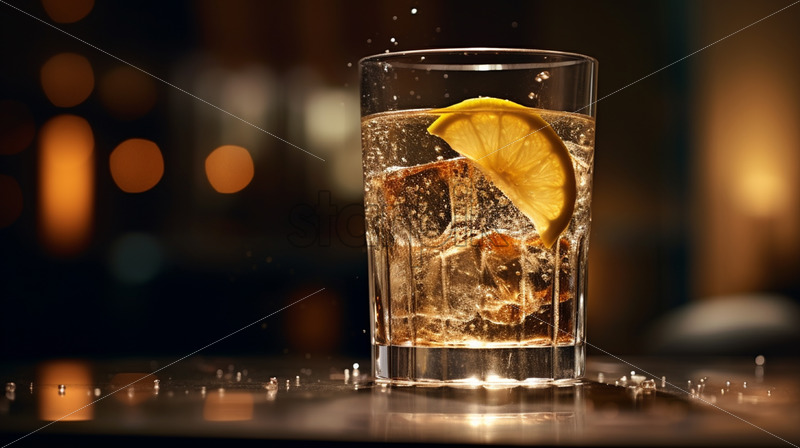 A glass with a refreshing drink